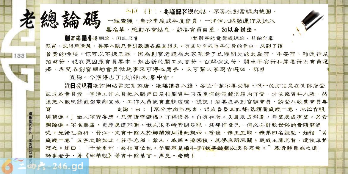 133期:六合皇金句/老总论码/萧公子/林大师/五行夺码/老总信箱截图