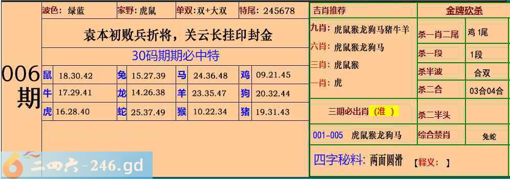 006期:30码期期必中特